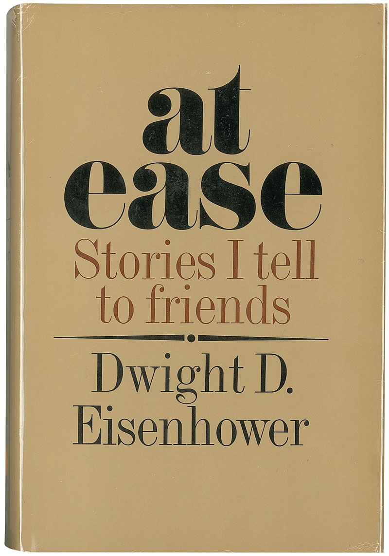 Signed book: At Ease: Stories I Tell to Friends. First edition. NY: Doubleday, 1967. Hardcover with dustjacket, 6.5 x 9.5, 400 pages. Signed on a bookplate affixed to the first free end page, which bears a typed inscription “For: Major Will H. Hays, Jr., with best wishes.” Small split to front hinge, a pencil notation to signed page and scattered light wear and impressions to dustjacket, otherwise fine condition. Accompanied by a letter of transmittal from Eisenhower’s executive assistant forwarding a bookplate to Eisenhower to sign.