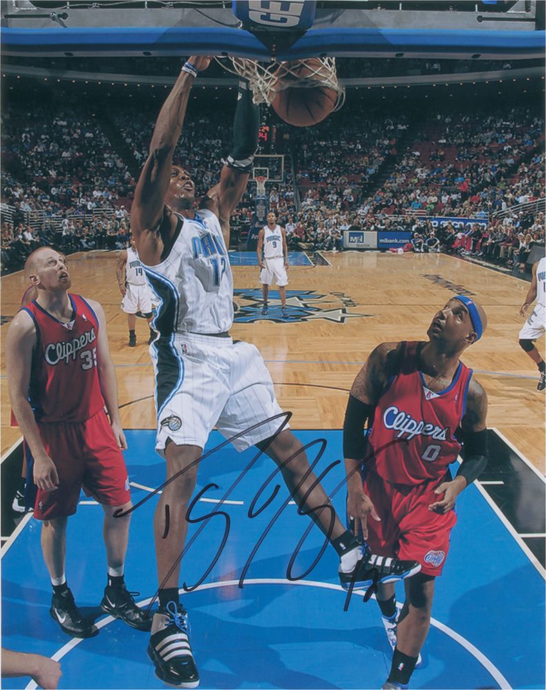 Two different color 8 x 10 laser print photos of Howard on the court with the Magic, each signed in black felt tip. In fine condition.