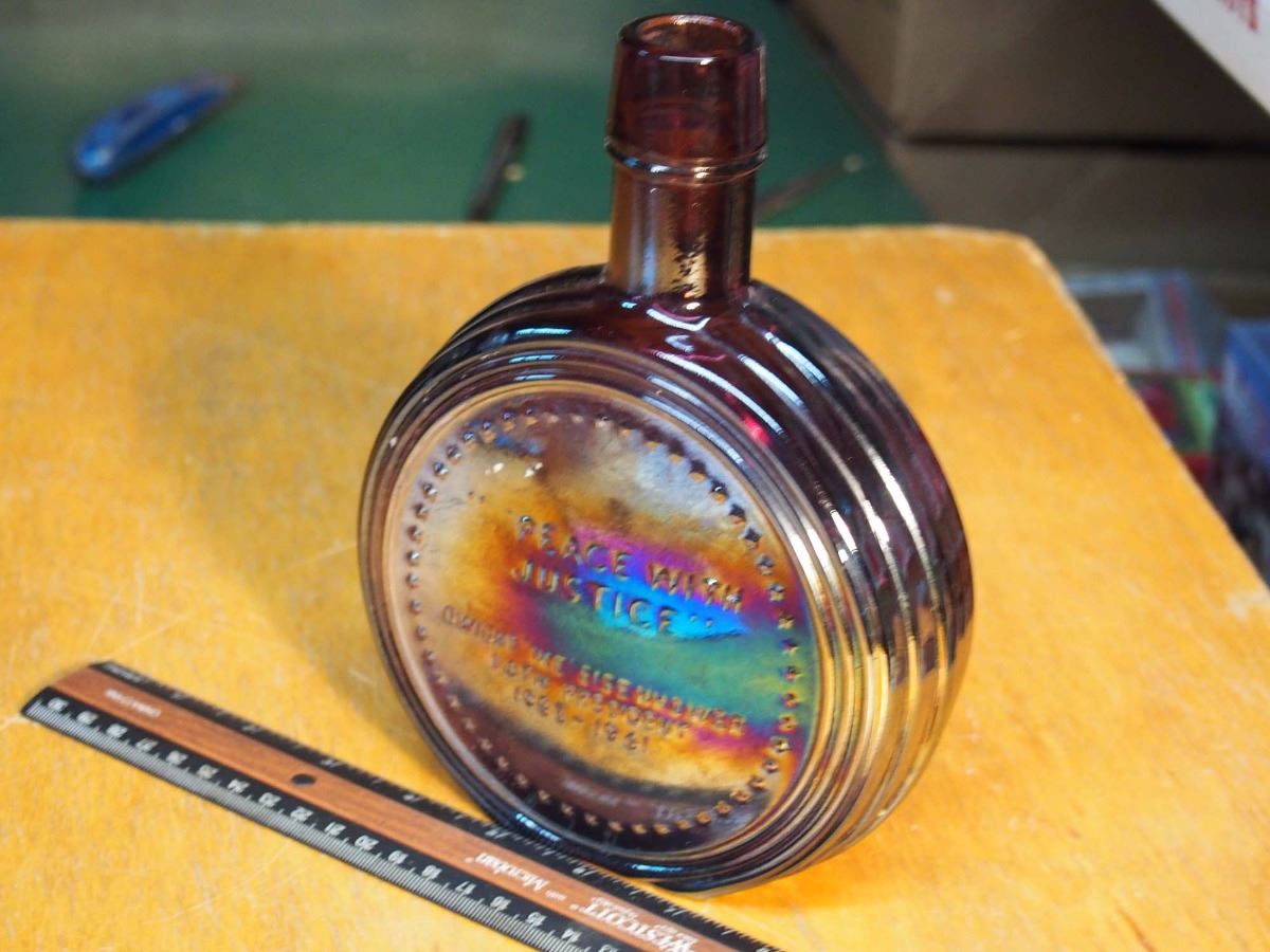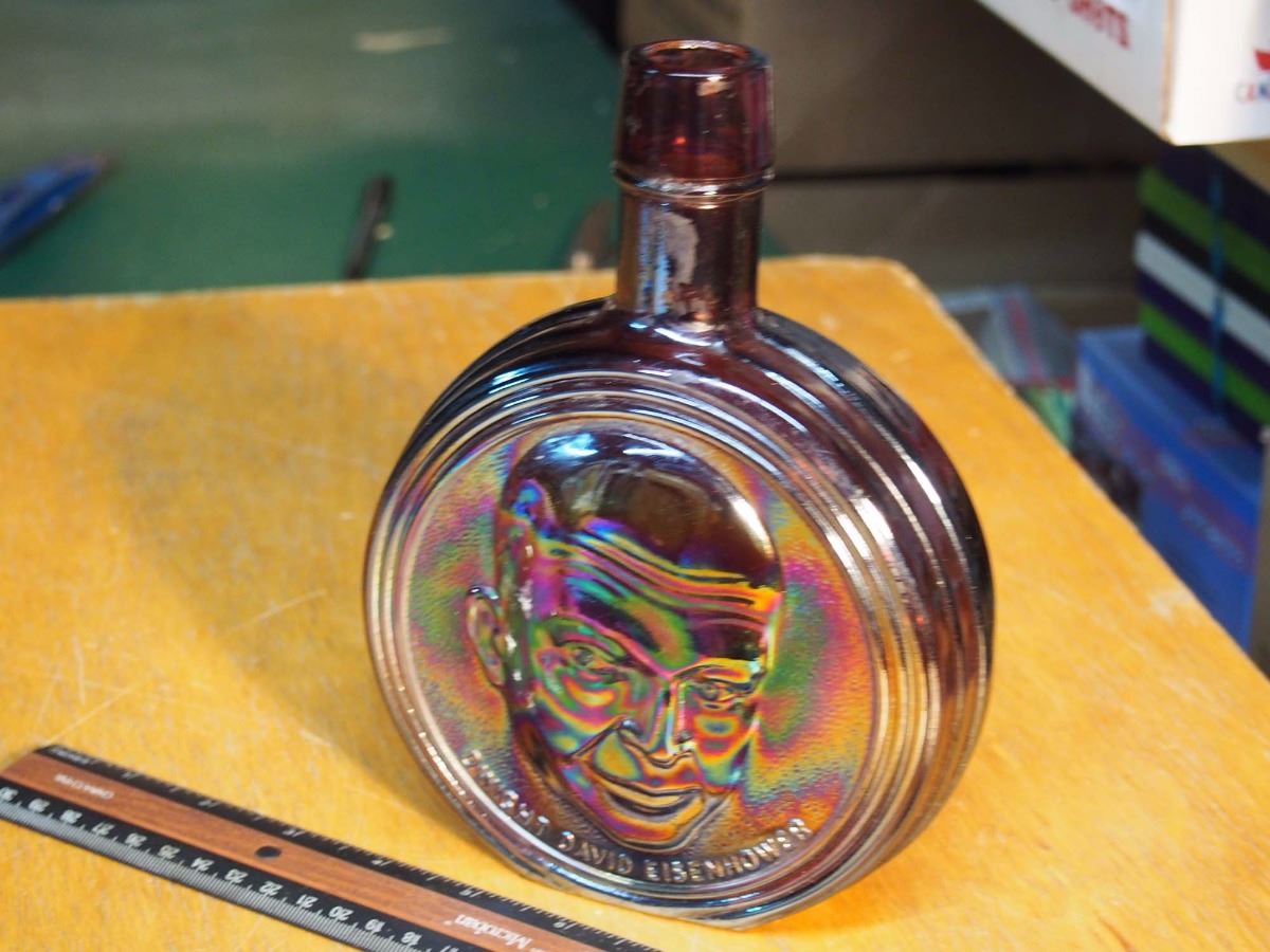 Dwight “IKE” Eisenhower Carnival Glass Decanter, Purple Iridescent, 1953-1961