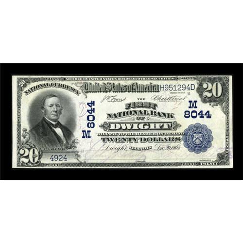 <B>Dwight, IL</B></I> - $20 1902 Plain Back Fr. 651 <B>The First NB</B></I> Ch. # (M)8044<BR> This piece appears fully uncirculated, though three folds are noted. <B>Extremely Fine.</B></I><BR><BR><b>Shipping:</b> Coins & Currency (<a target="_blank" href="http://www.heritageauctions.com/common/shipping.php">view shipping information</a>)