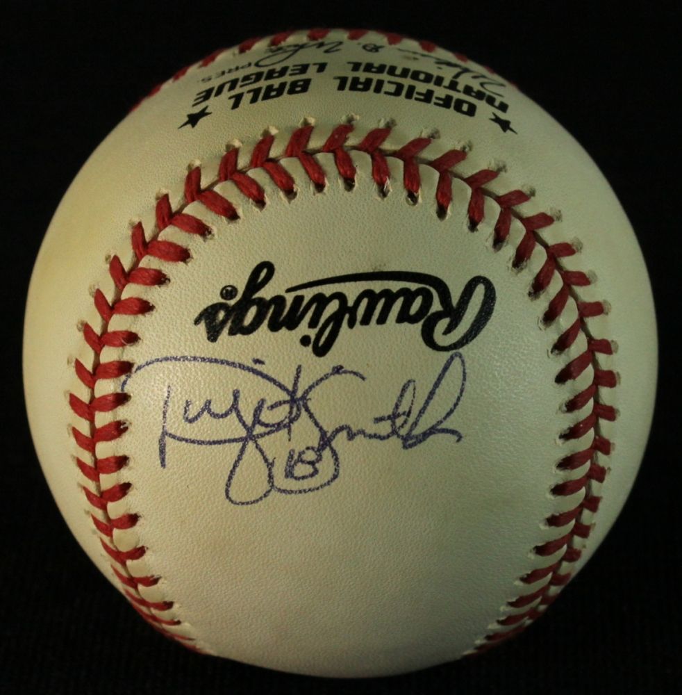 Official National League Baseball hand-signed in blue ink by Dwight Smith (Cubs, Braves). Autograph includes a Global Authentics COA for authenticity purposes.