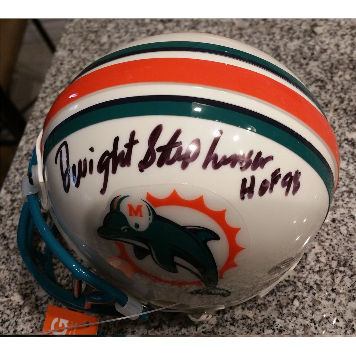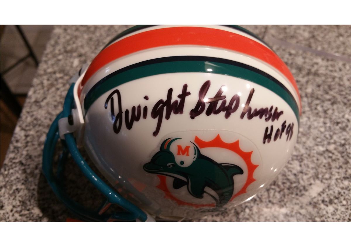 Dwight Stephenson Signed Dolphins Mini Helmet Black sharpie signature and will come with a cube and COA