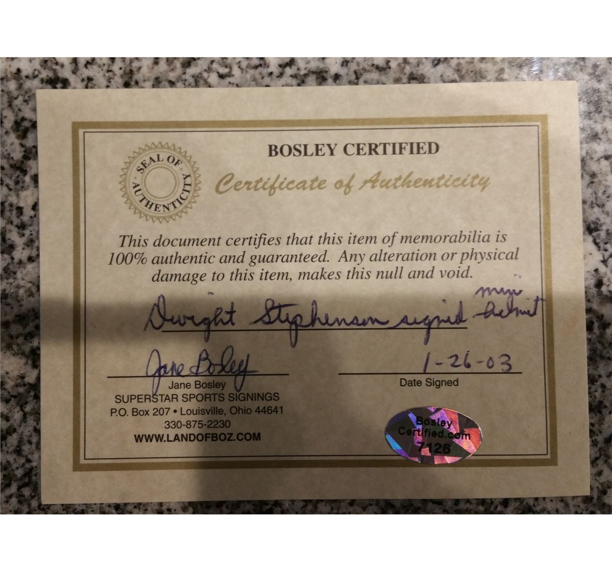 Most autographed memorabilia comes with a Certificate of Authenticity. CAS may have an interest in certain third-party authenticators and bidder hereby waives any potential conflicts therein related to CAS’s relationship with such authenticators. CAS is not responsible for the opinions of any of the third-party authenticators. You should in no way rely exclusively on such third-party opinions without conducting your own due diligence prior to bidding. All Certificates of Authenticity may only be relied upon for one year from the date of sale of any item.