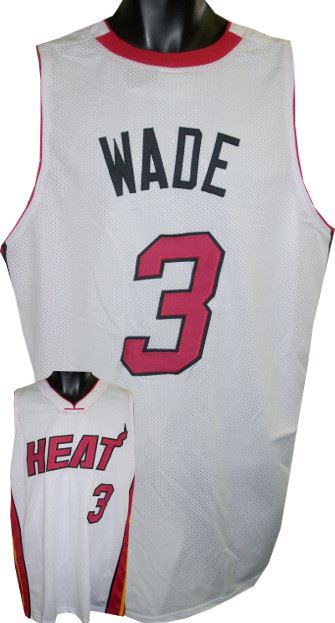 Dwyane Wade currently plays for the Miami Heat. He was awarded 2006 Sportsman of the Year by Sports Illustrated. Wade has established himself as one of the most well-known and popular players in the league. He had the top selling jersey in the NBA for nearly two years. After entering the league as the fifth pick in the 2003 NBA Draft, Wade was named to the All-Rookie team and the All-Star team the following six seasons. In his third season, Wade helped lead the Miami Heat to their first NBA Championship in franchise history. He was named the 2006 NBA Finals MVP as he helped lead the Heat to a 4–2 series win over the Dallas Mavericks. This is a Dwyane Wade Miami Heat unsigned White unlicensed custom-prostyle jersey with twill stitched nameplate and numbers. perfect for autograph or to wear! Size XL