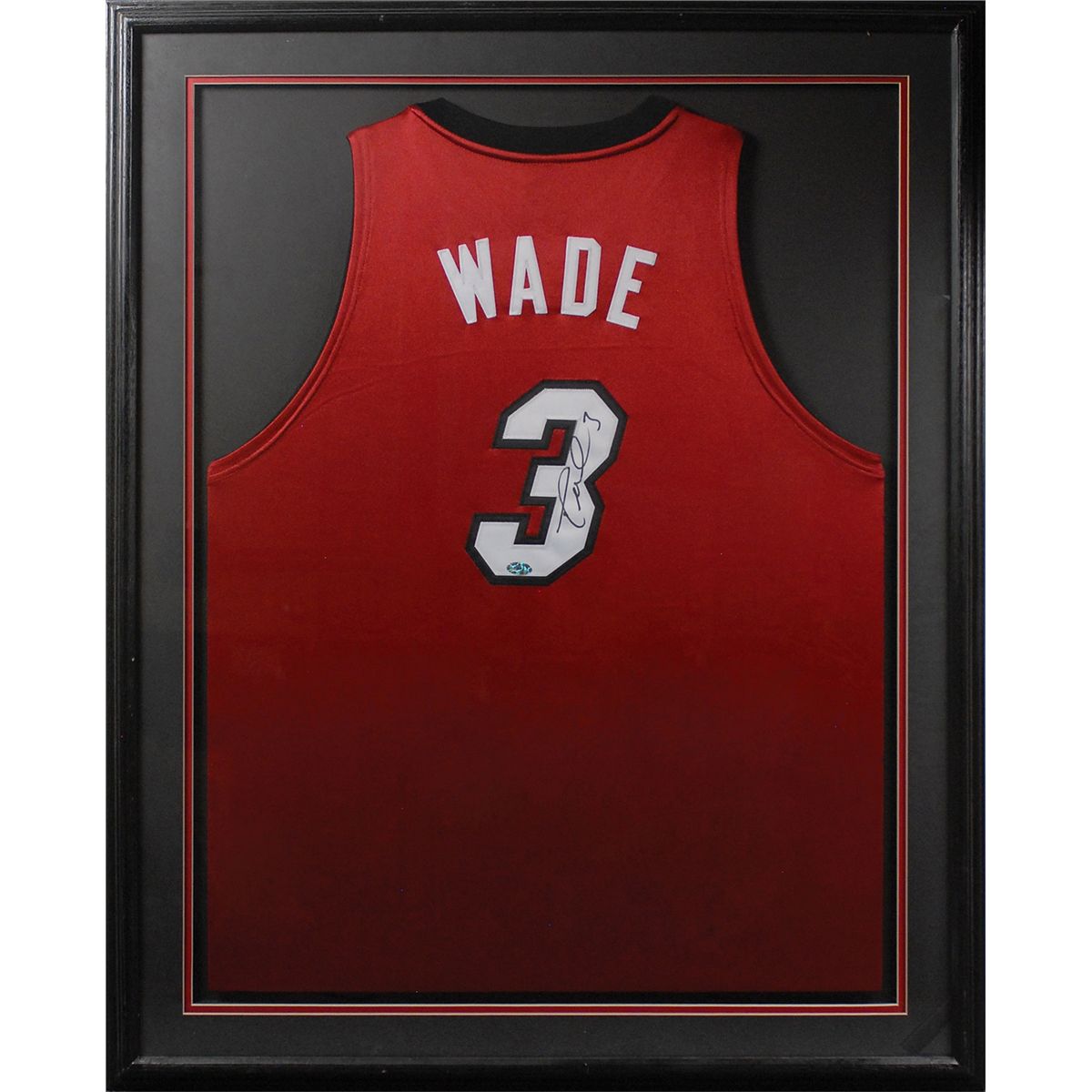 Replica Miami Heat basketball jersey, with sewn on letters and numbers, signed in black felt tip on the number on the back. Double-matted and framed to an overall size of 34 x 42. In fine condition. Oversized.