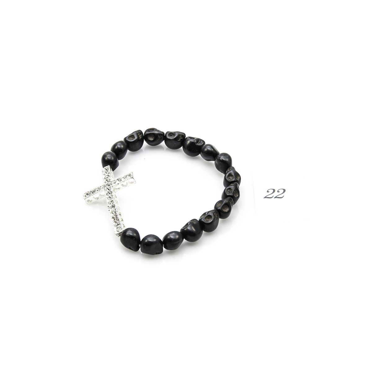 Dyed Stone & Crystal Skull & Cross Bracelet