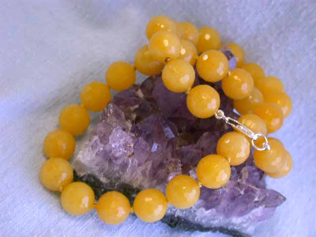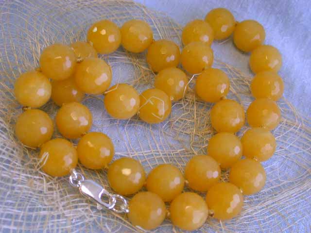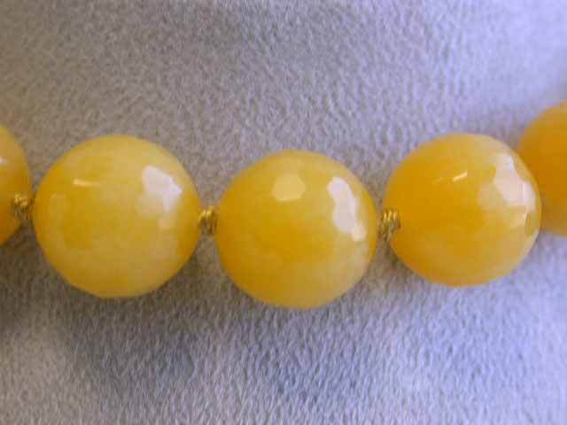 Dyed Yellow Jade Necklace - approximately 11.8 mm bead size w/ Sterling Silver Clasp and approximately 18 inches long