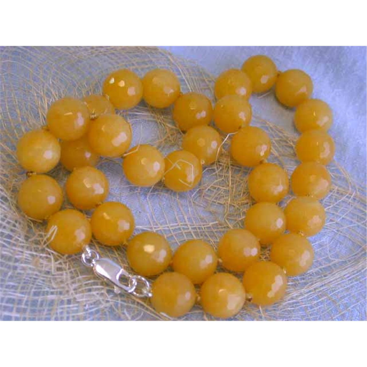 Dyed Yellow Jade Necklace - approximately 11.8 mm bead size w/ Sterling Silver Clasp and approximately 18 inches long