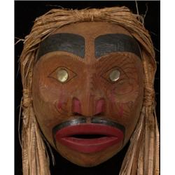 Dying Warrior Mask with Abalone Inlaid Eyes by Don Beans From Alert Bay, B.C. 10" H. 8" W. Good Condition