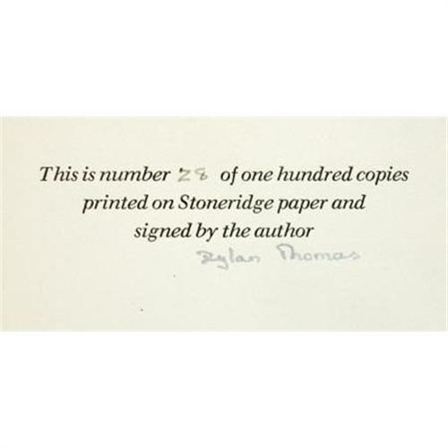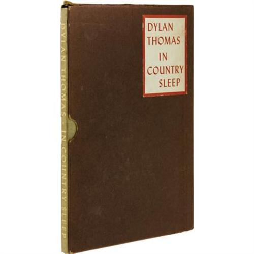 <B>Dylan Thomas Signed, Numbered Limited Edition Book of Poetry: <I>In Country Sleep,</B></I></B></I> (New York: James Laughlin, 1952), number 27 of 100 copies, hardcover with slipcase, 34 pp., 8vo (6” x 8.75”), tipped-in photograph of Thomas on title page. Minor chips to extremities of slipcase, else very fine condition. Six of the great Welshman's poems are incorporated into this small collection. The inclusion of <I>Do Not Go Gentle Into That Good Night</B></I> marks the poem's first publication in a book. <BR><BR><b>Shipping:</b> Books & Catalogs (<a target="_blank" href="http://www.heritageauctions.com/common/shipping.php">view shipping information</a>)