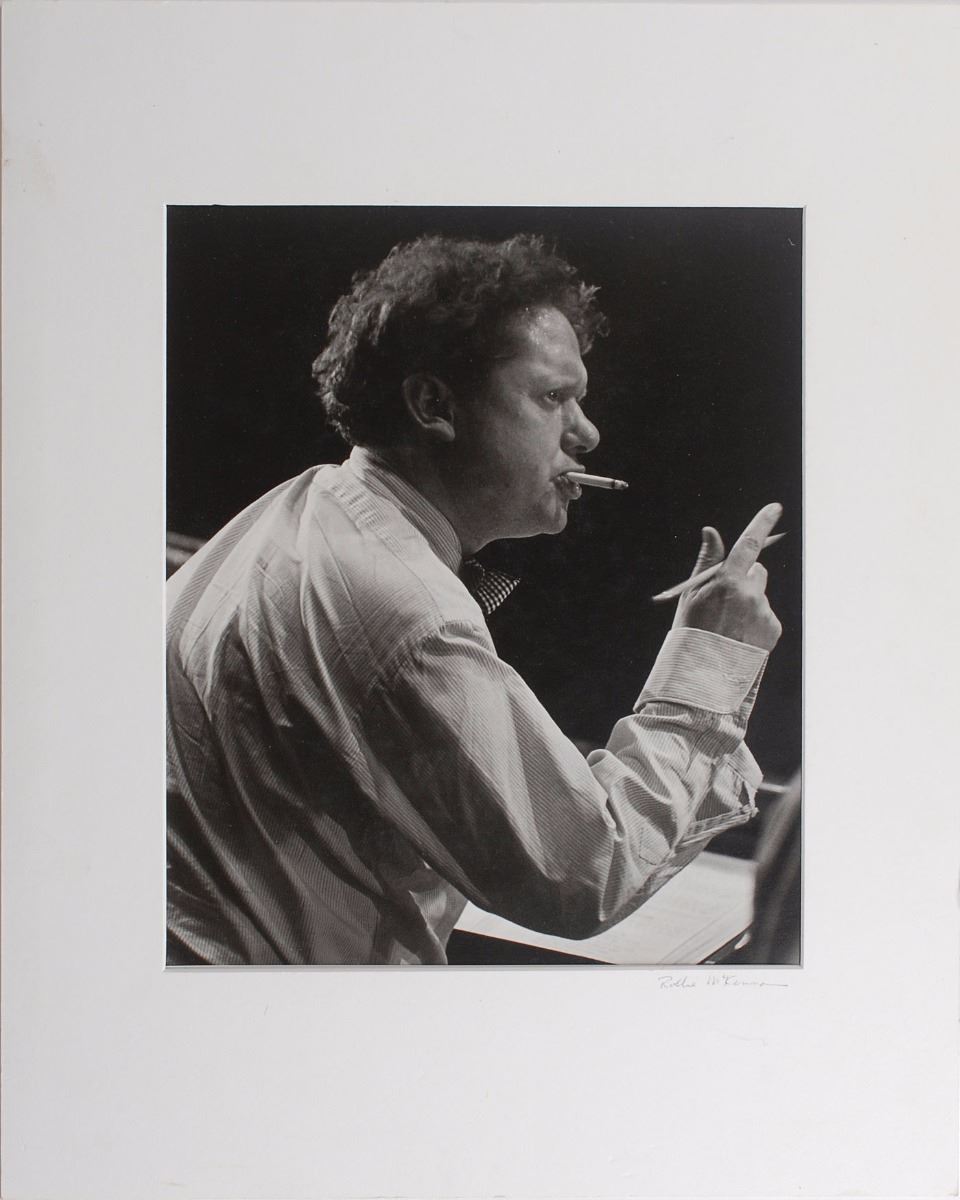 Tremendous matte-finish 10.5 x 12.5 exhibition photograph of Thomas in a dramatic half-length pose during rehearsal for his 1953 play Under Milk Wood, signed in pencil by the photographer, Rollie McKenna, in the lower border of both the photo and the mat, with the reverse bearing the photographer’s copyright stamp. Matted to an overall size of 16 x 20. In fine condition. In April of 1953, Thomas returned to New York to help with rehearsals for an upcoming performance of Under Milk Wood. Suffering from gout and gastritis, the visibly unwell scribe soldiered through the Poetry Centre read-throughs, reciting all fifty-four parts of the First Voice and the Reverend Eli Jenkins himself. As McKenna photographed, Thomas admonished his performers to ‘love the words…love the words.’ The play was recorded on April 15, and remains the only known recorded performance of Under Milk Wood with Thomas as a part of the cast; his untimely death just six months later canceled a planned studio recording in early 1954.