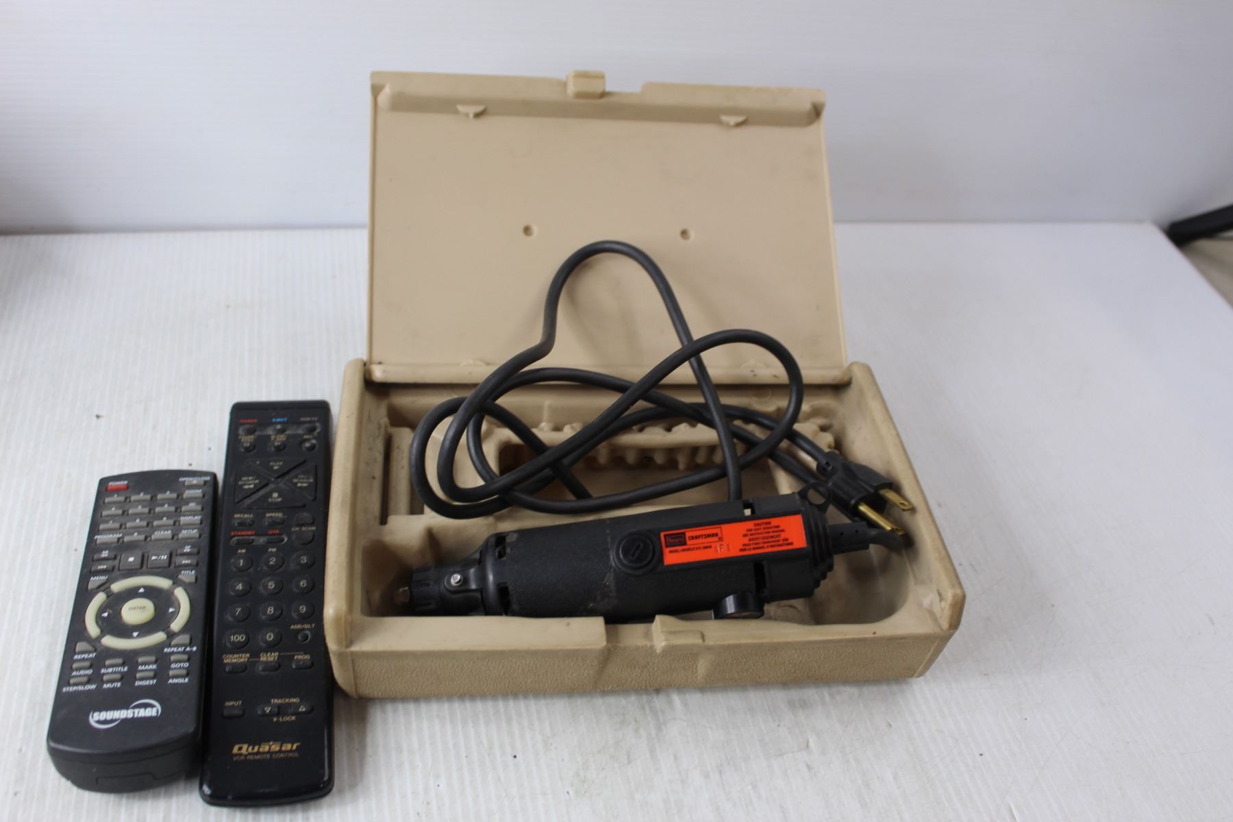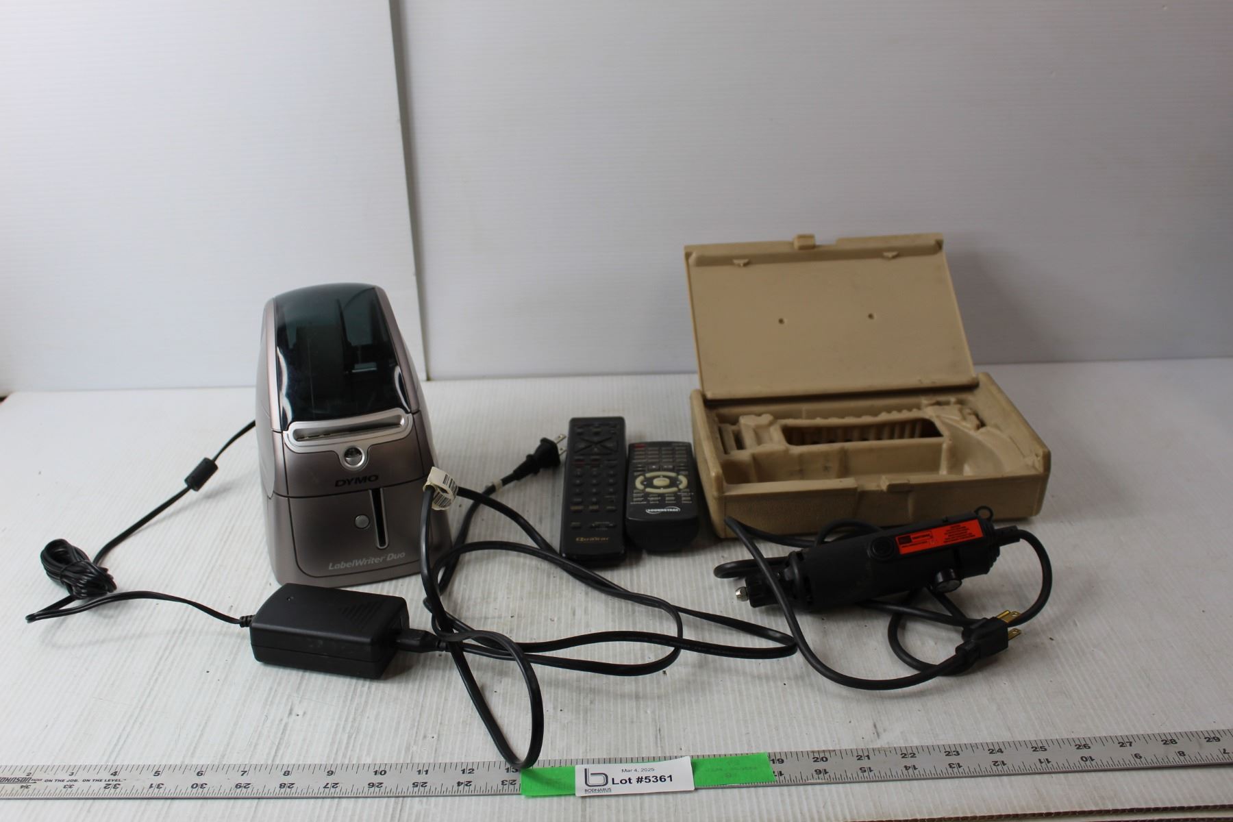 Dymo Label Writer Duo- Powers On & Craftsman Rotary Tool with Case- As Is, Soundstage & Quasar Remotes