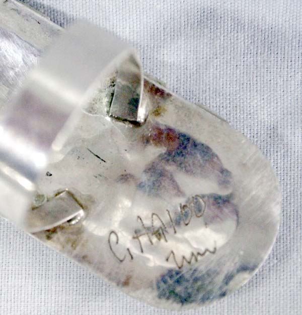 1980's Dynamic Native American Zuni Silver Turquoise Ring by Carmichael Haloo, Size 10, Fish scale design, sterling silver set with inlay turquoise signed by artist, measures 1.75'' x 1'', looks very flattering on, 11.33g in total wt.