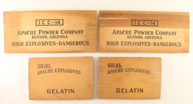 Four wood slats from a dynamite box with wire on back for hanging. All from Apache Powder Company, Benson, AZ. Great for the man cave.