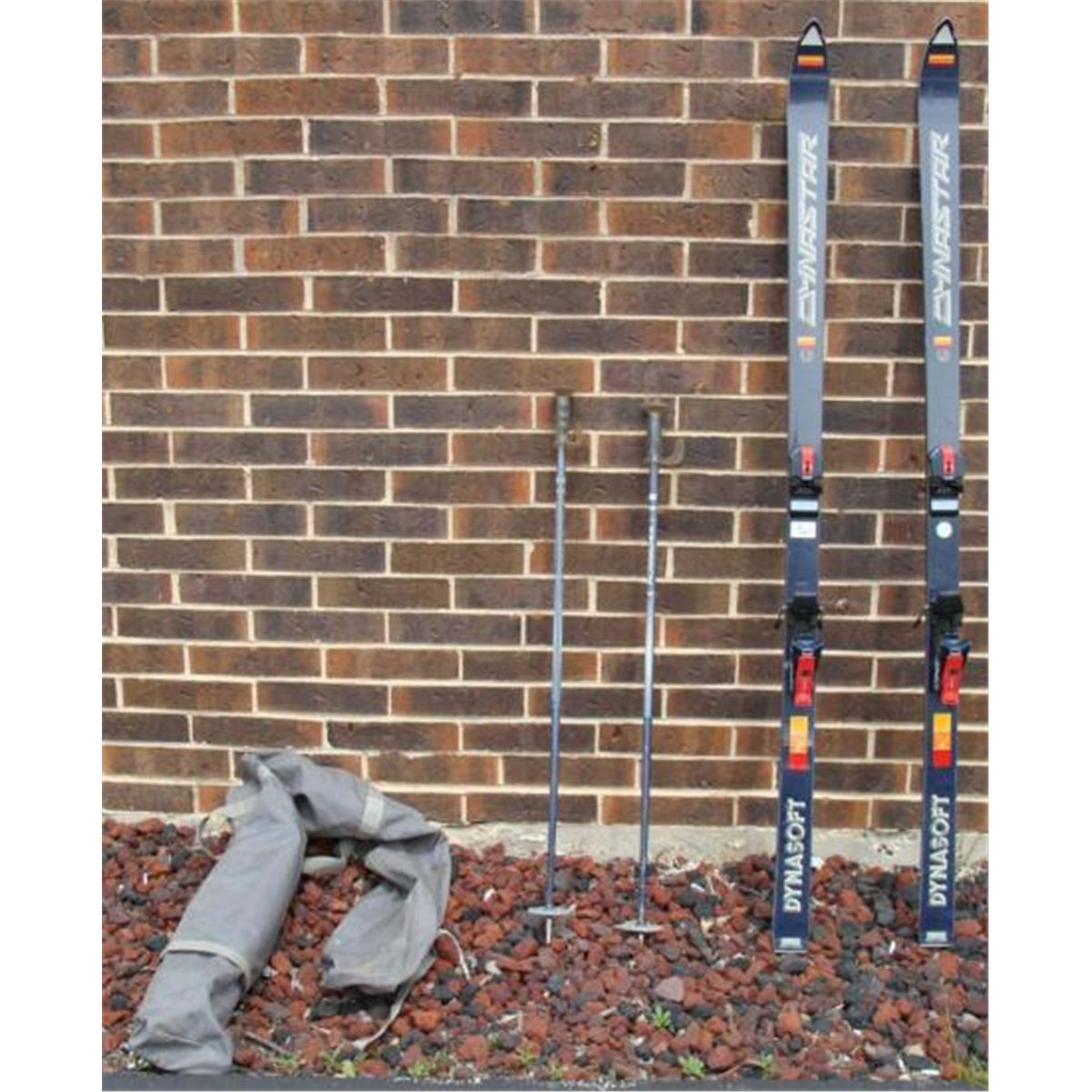 Here is a pair of complete skis and poles, in used but very good condition. The skis are Dynasoft Dynastar Omega. They are Fibrometal Polyurethane. Their length is approximately 72 inches long. Fittings include Marker Sensomatic M40. * The poles are Rossignol, 46" long. * Both skis and poles have some surface wear, but no real nicks. They have not been tested recently, and we're not sure when they date from, but they should be ready to go. Included is a canvas carry bag. * These are nice looking skis for anyone ready to hit the slopes.