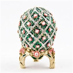 Rose Trellis Faberge Egg. Material: Pewter, Crystals, Enamel. Dimensions: 2.5in (height with stand, 2in without stand) X 1.5...