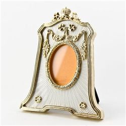 Silver Enameled Faberge Frame, This silver guilloche enamed photo frame contains golden garlands suspended from elegant crystals, th...