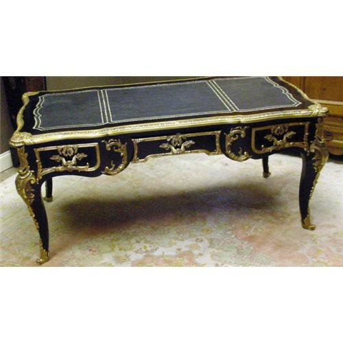 Handsome Black Lacquered Table Desk With Leather Inserts