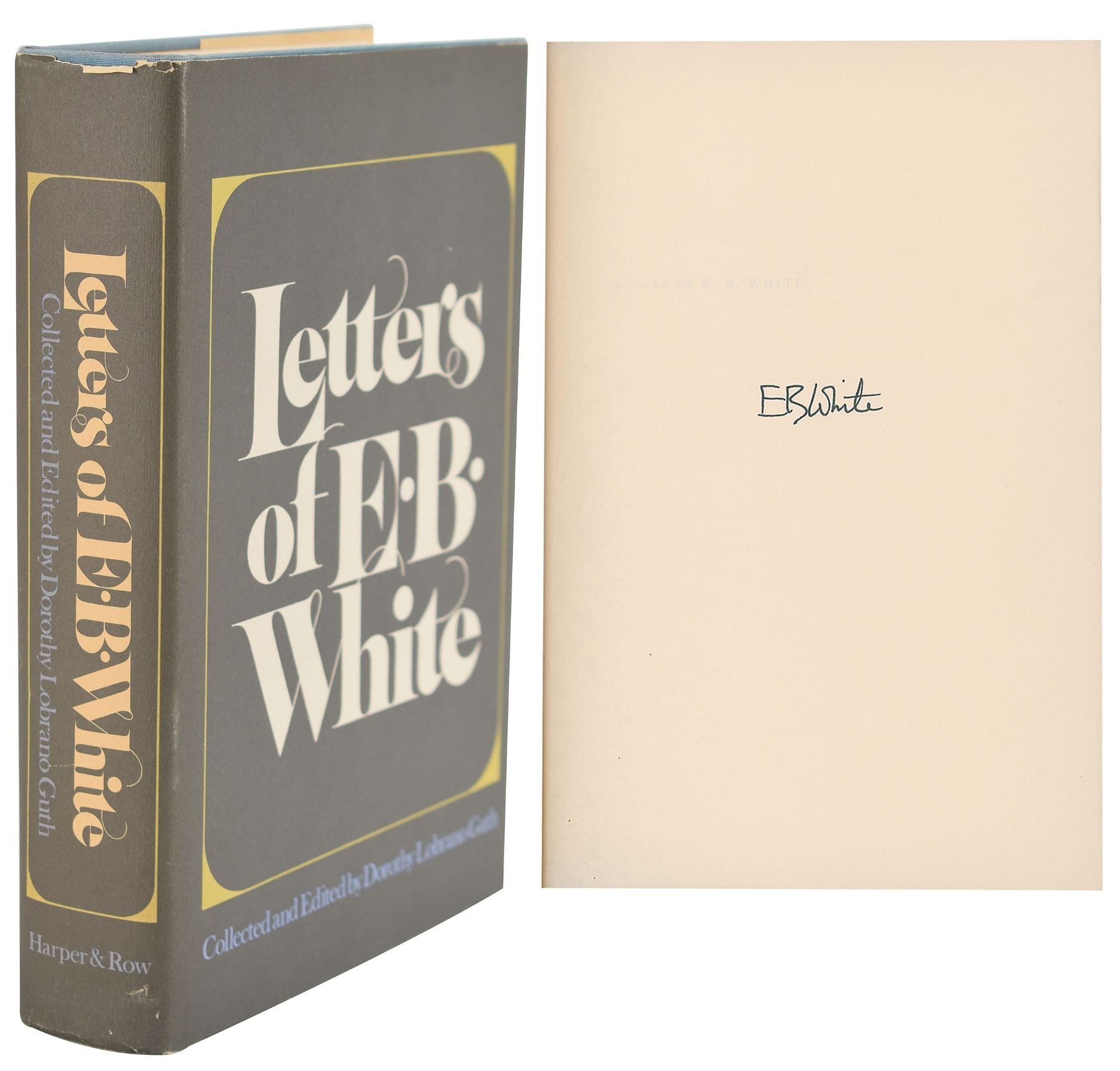 Signed book: Letters of E. B. White. First edition, first printing. NY: Harper & Row, 1976. Hardcover with dust jacket, 6.75 x 9.5, 686 pages. Signed on a free end page in black felt tip, "E. B. White." In fine condition.