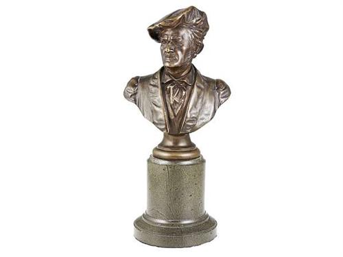 Cast bronze with patina, marble base (minor chip). Marked back on the base: E. Börmel, Berlin, 1897. Size: 28 cm