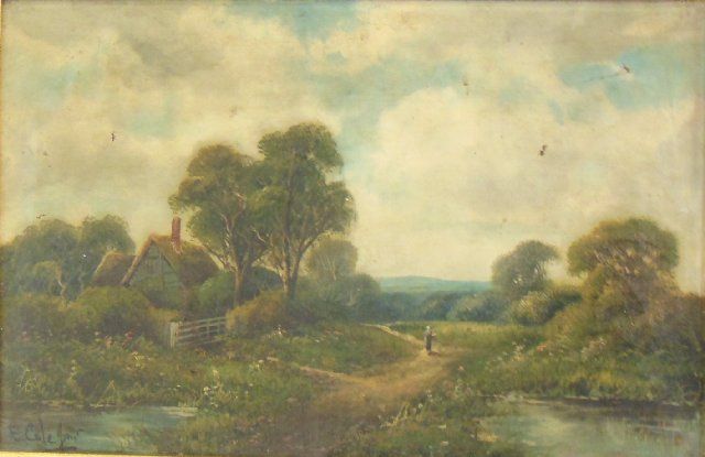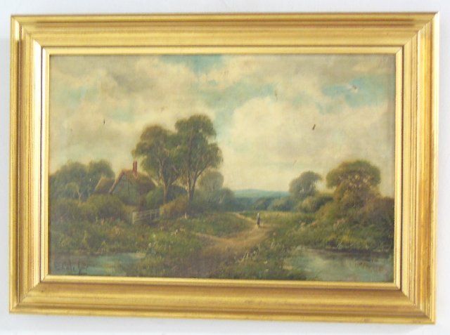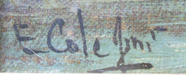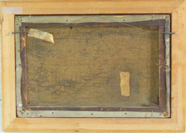 On canvas, signed, 2 small tears. Framed approx. 16" x 22".