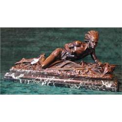 E Drouot; a patinated bronze figure cast from a model by Edouard Drouot, modelled as a native American Indian holding a bow, on stepped marble base, signed, length 50cm
