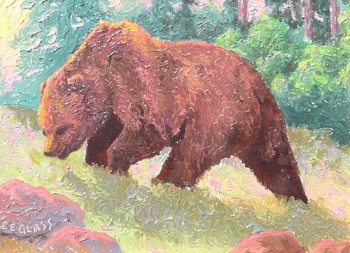 Emerson Everett Glass (1916 - 1987) Oil on Board "Grizzly Bear" Signed lower left 6" x 8"