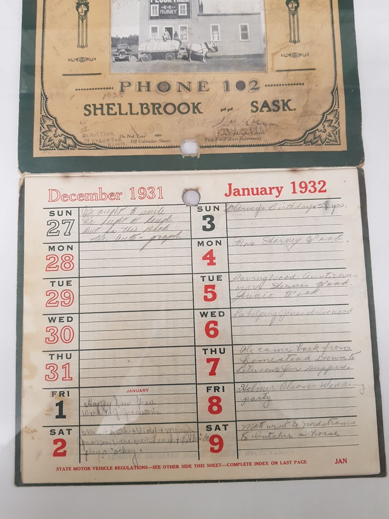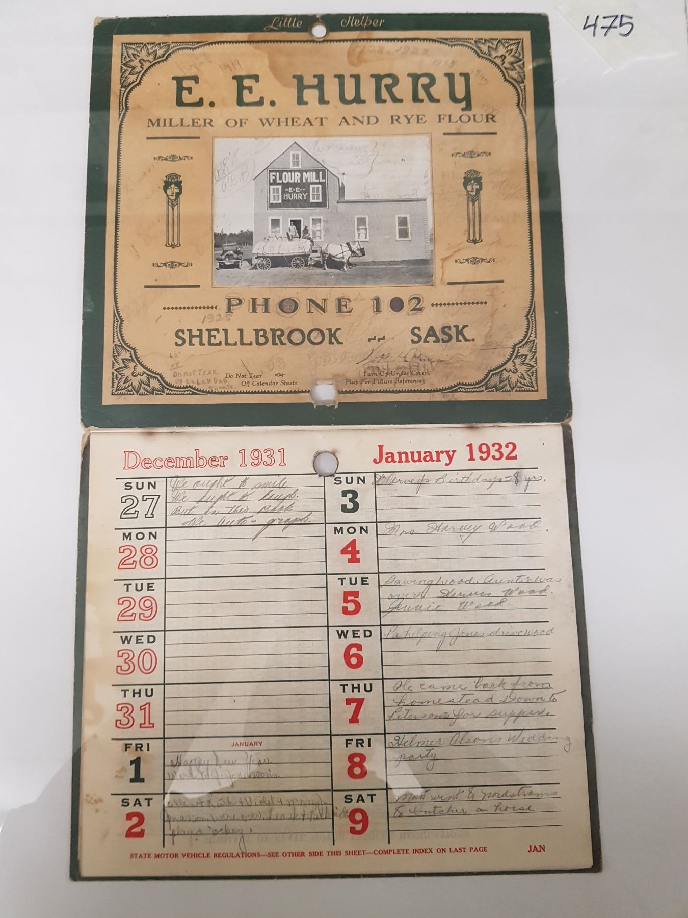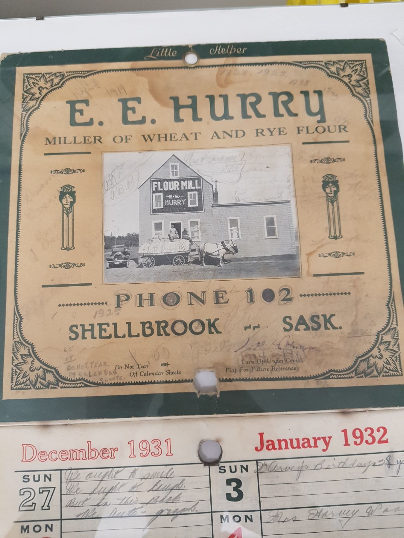 E.E. HURRY SHELLBROOK, SK 1931/32 CALENDAR 17 X 10"