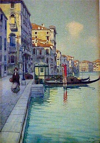 E. (Emilio) Boni watercolor "Morning - Venice" signed lower right; listed Italian 1844-1867; image measures 9 1/4" x 6"; framed (no visible defects)