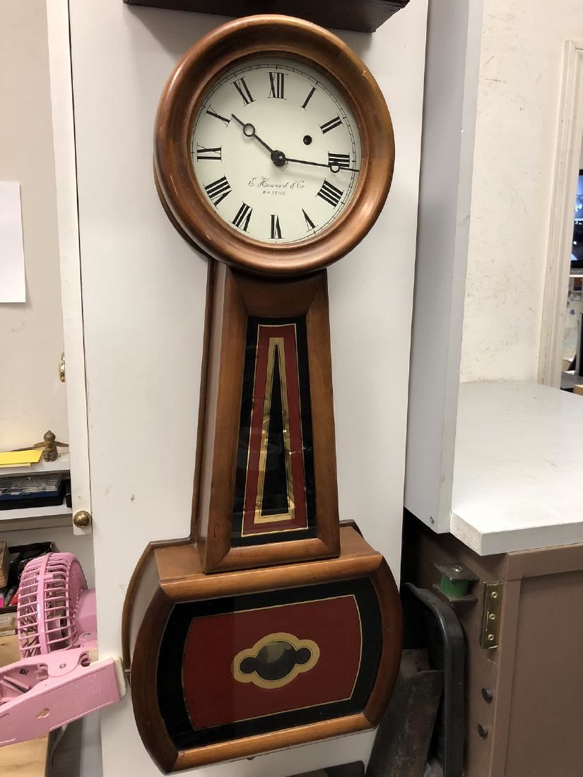 E. Howard and Co., Boston Mass., weight driven banjo clock. Anniversary edition model, all in running condition, measures approx. 30" long. Beautiful E. Howard Banjo Clock.