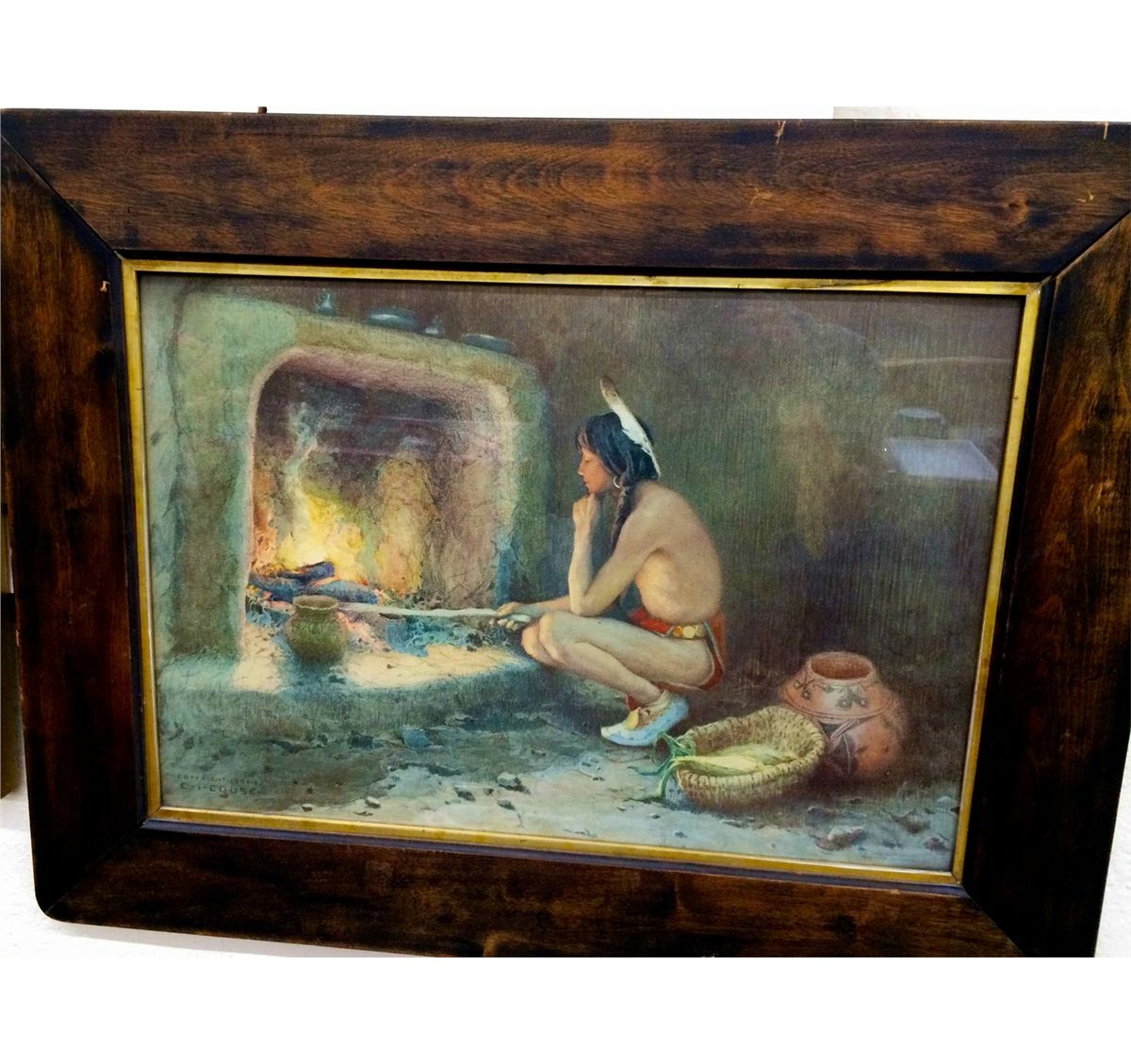 A beautifully framed print by renowned Taos artist E. I. Couse dated 1904.