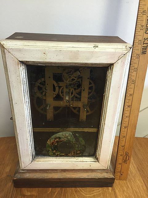 Little white E. Ingraham with unusual Victorian little boy with birds scene on glass, no dial , sold as is.