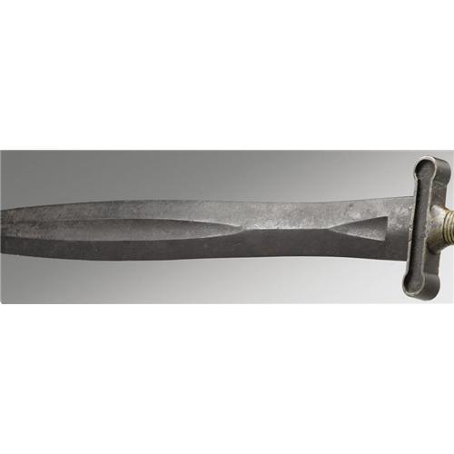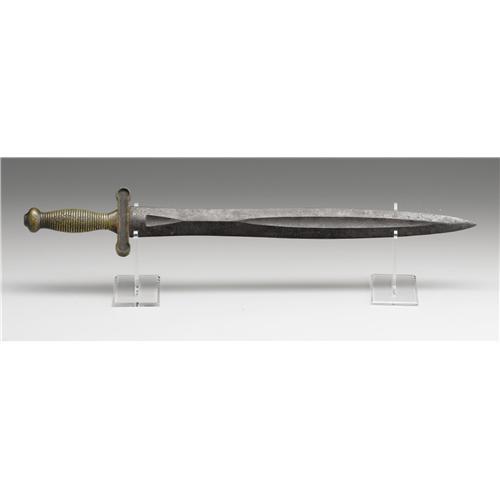 <B>E. J. Johnston Confederate Artillery Short Sword.</B></I> This Confederate artillery short sword was manufactured during the Civil War by E. J. Johnston of Macon, Georgia. The firm made many types of edged weapons throughout the war, with this sword being a unique short sword made especially for artillerymen. Measuring 25" overall, the blade has diamond-shaped fullers and the handle is cast brass. A fine example of a Confederate short sword by a noted weapons manufacturer from Georgia.<BR><BR><b>Shipping:</b> Large Collectibles (<a target="_blank" href="http://www.heritageauctions.com/common/shipping.php">view shipping information</a>)