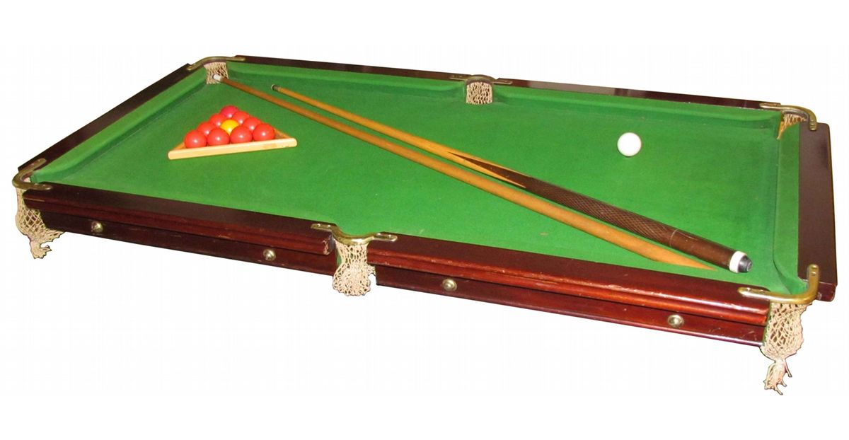 E.J. Riley Table Top Billiard Table of Accrington. Comes with score keeper, chalk tin, balls, rack, cues, Instructions. Excellent Condition. Approx. 48 X 24 X 5 inches.