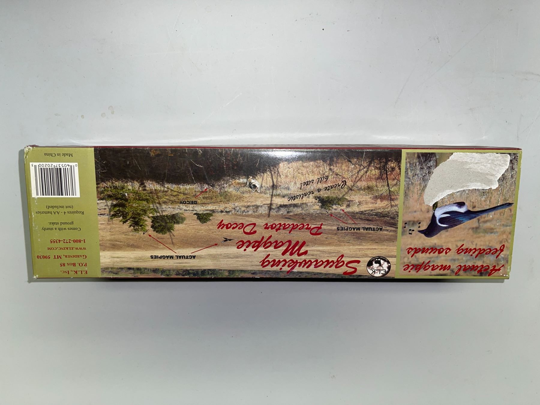 - The E.L.K. Squawking Magpie Predator Decoy helps in creating a realistic kill site with excellent visual appeal as well as actual magpie feeding sounds. This is a true confidence decoy.