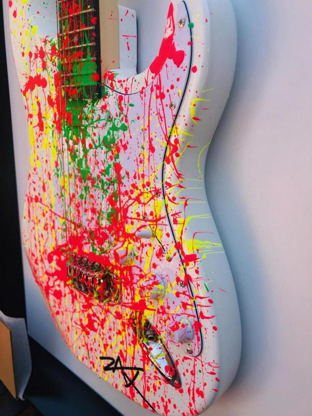 Artist: E.M. Zax. Medium: One-of-a-Kind hand painted Guitar. Title: Guitar. Size (Unframed): 38" x 16". Size (Framed): 48" x 23". Reference# 13756.