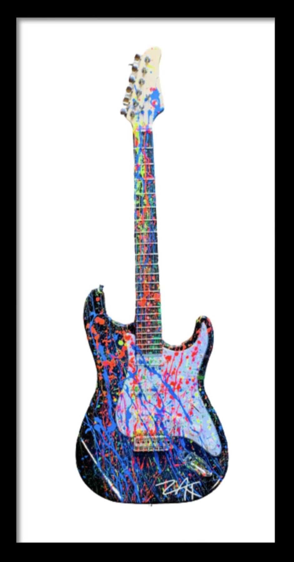 Artist: E.M. Zax. Medium: One-of-a-Kind hand painted Guitar. Title: Guitar. Size (Unframed): 38" x 16". Size (Framed): 48" x 23". Reference# 13708.