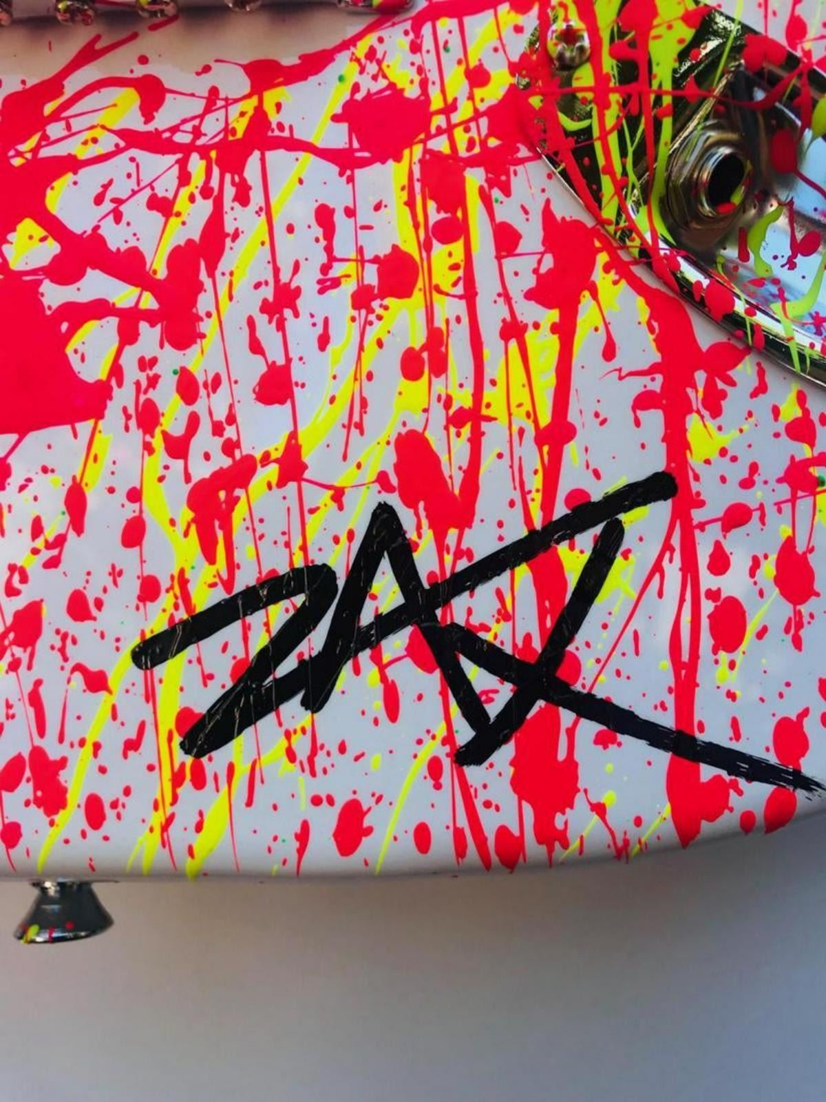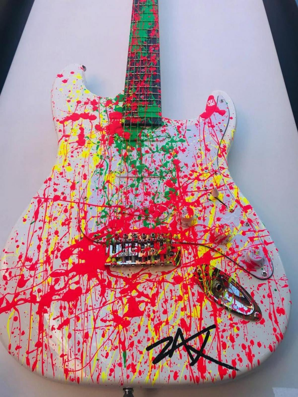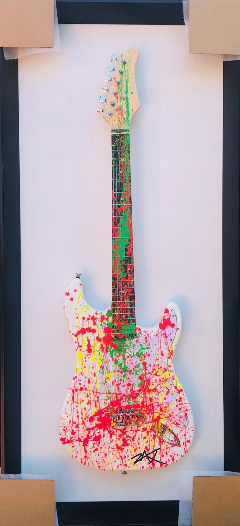Artist: E.M. Zax. Medium: One-of-a-Kind hand painted Guitar. Title: Guitar. Size (Unframed): 38" x 16". Size (Framed): 48" x 23". Reference# 13756.