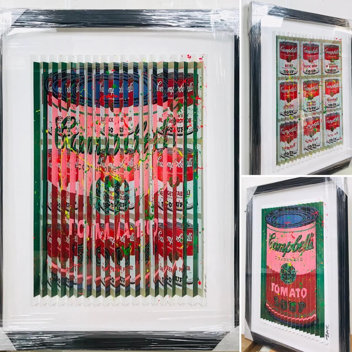 Artist: E.M. Zax. Medium: One-of-a-kind 3D polymorph mixed media on paper. Title: Hommage to Warhol II. Size (Unframed): 24" x 30". Size (Framed): 30" x 40". Certificate of Authenticity: Is included. Reference# 12817.