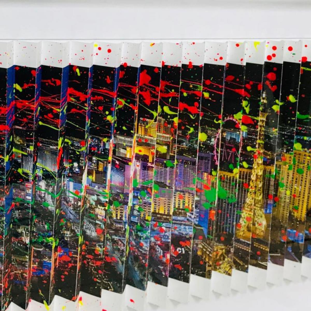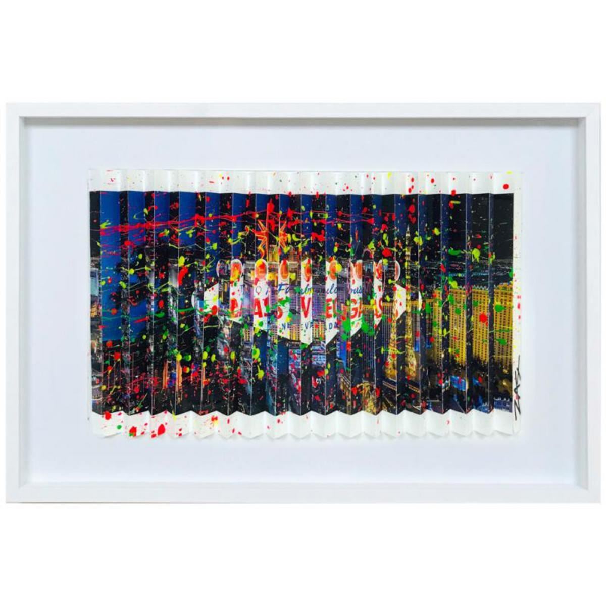 Artist: E.M. Zax. Medium: One-of-a-kind 3D polymorph mixed media on paper. Title: Vegas Strong. Size (Unframed): 12" x 22". Measures approx. (Framed): 20" x 30". Certificate of Authenticity: Is included. Reference# 12813.