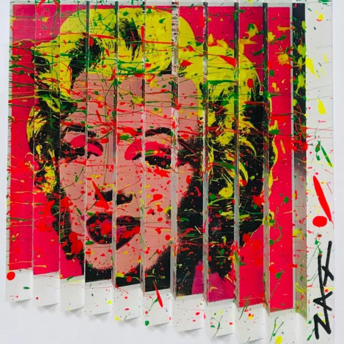 E.M. Zax- One-of-a-kind 3D polymorph mixed media on paper "Warhol & Channel"