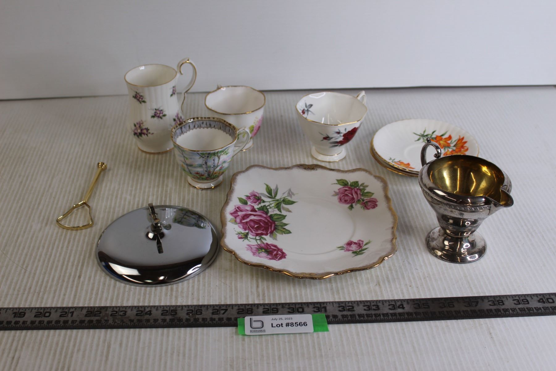 E.P. Copper Creamer, (3) Teacups, Misc.