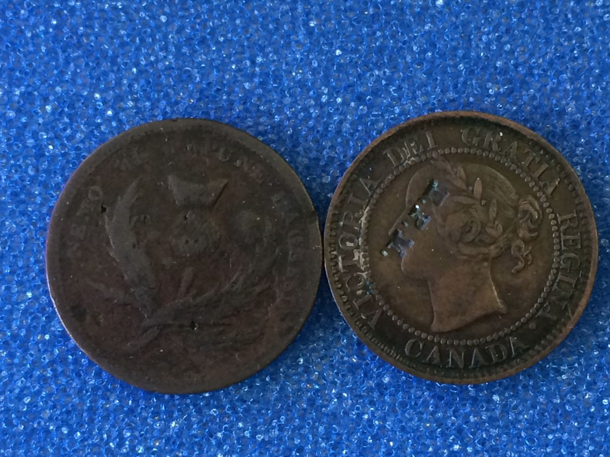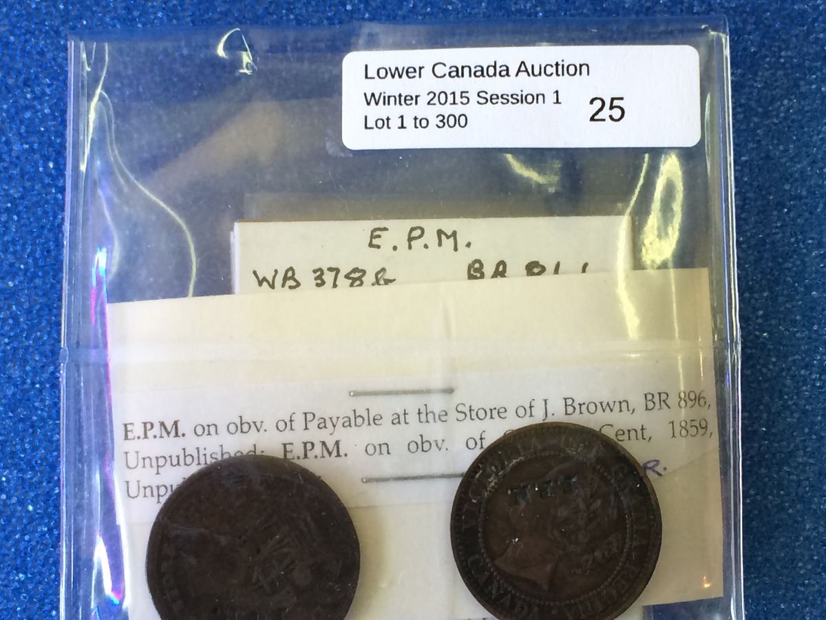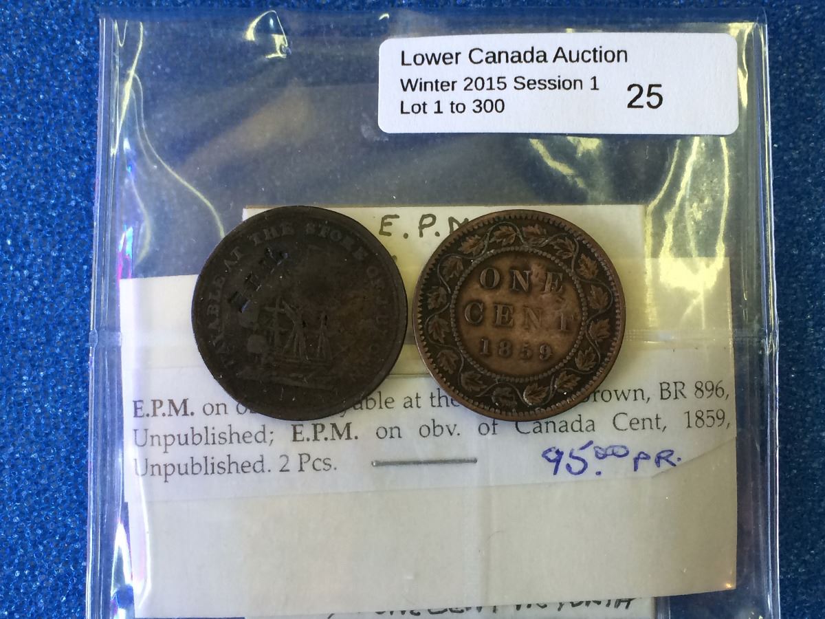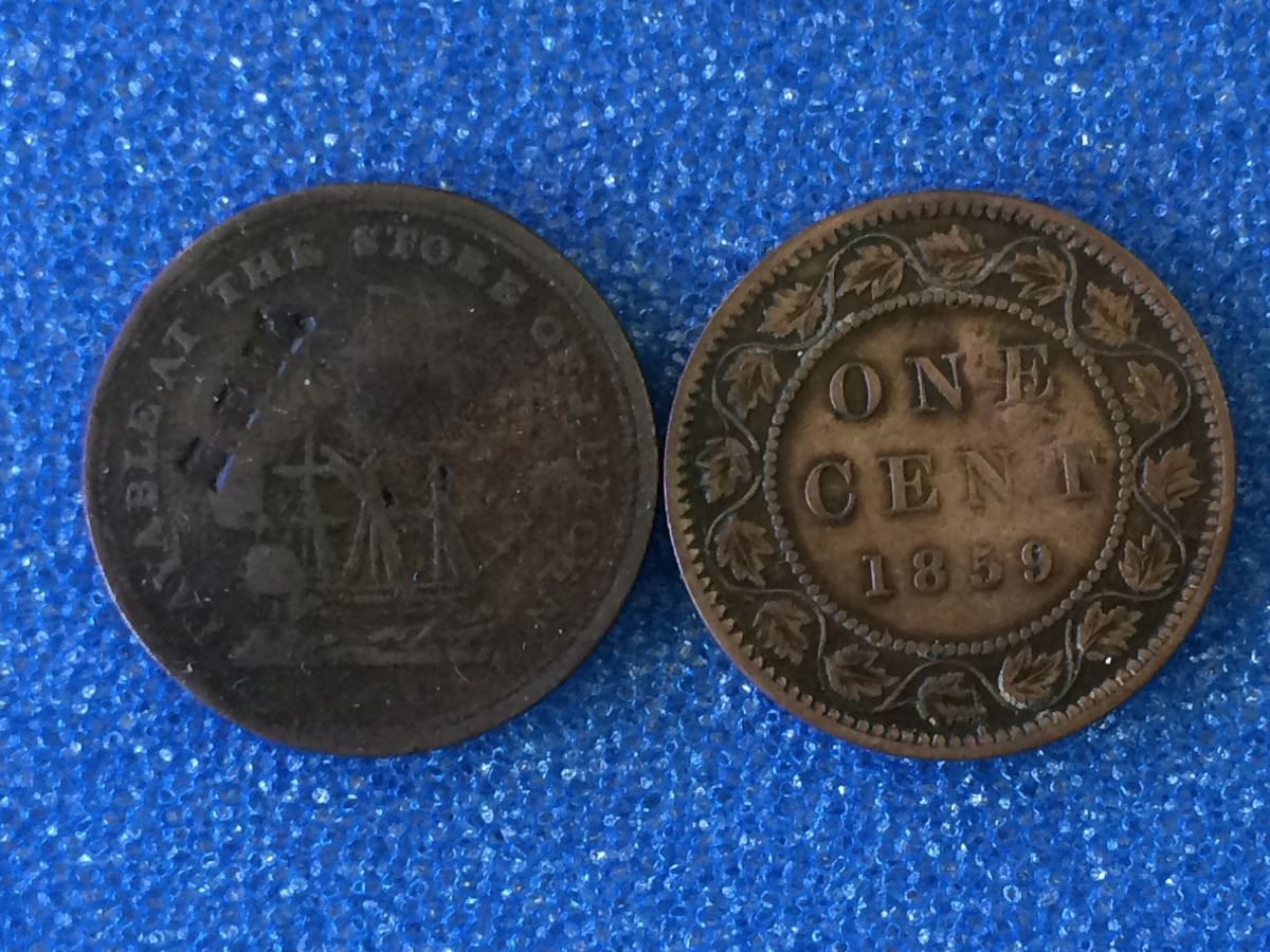 E.P.M. Counterstamped token on BR-896 & One cent Canada 1859, lot of two pcs.