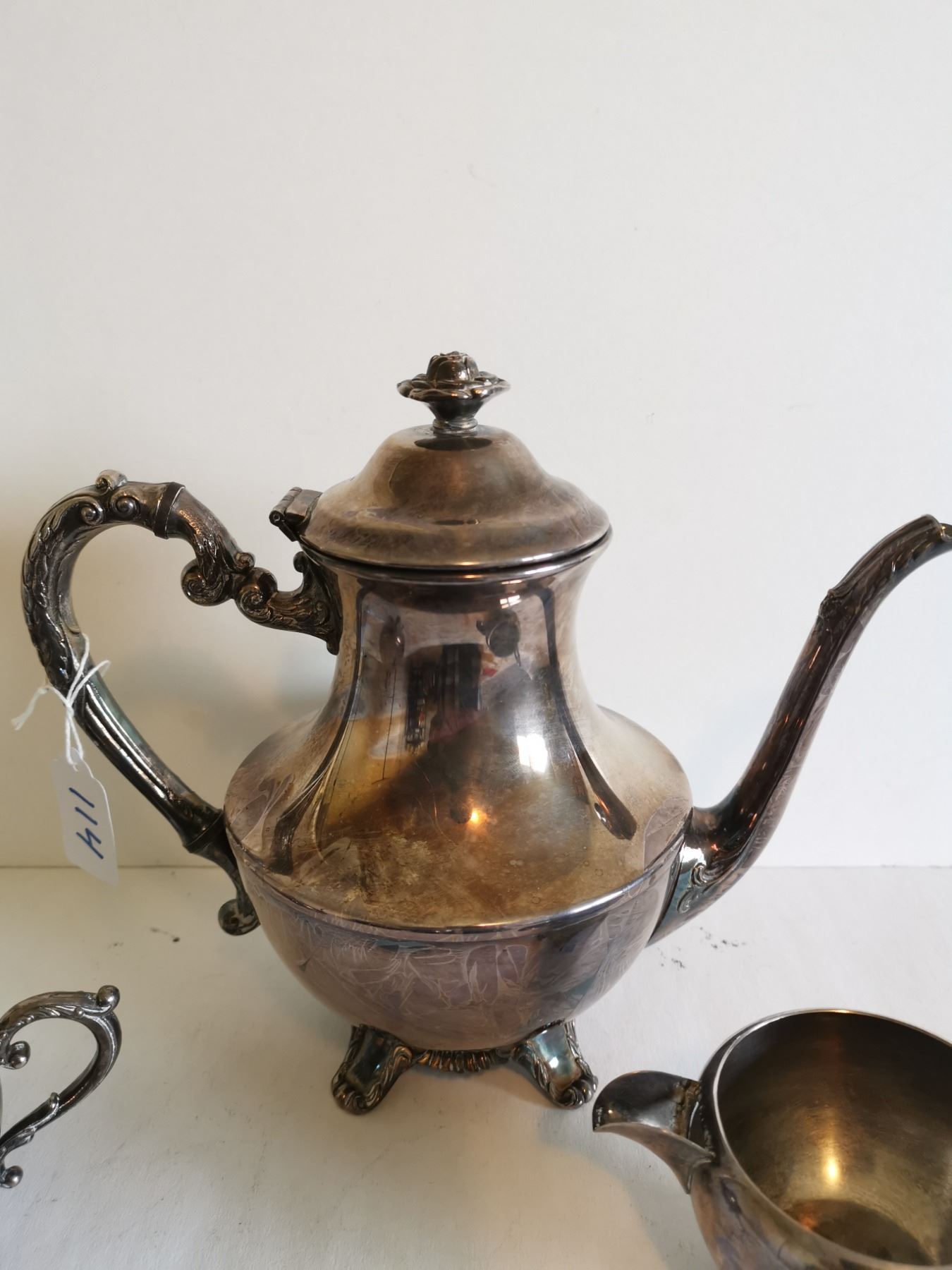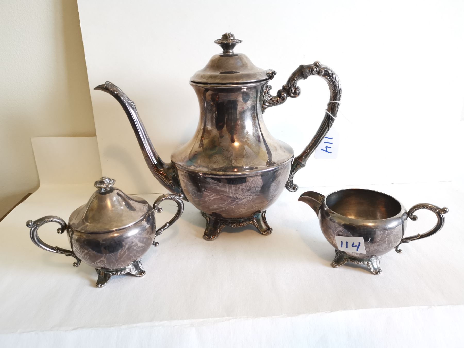 E.P. on Copper Teapot Cream and Sugar Bowl