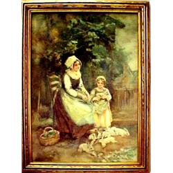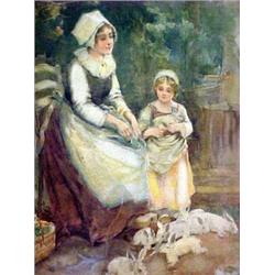 E. Percy Moran, watercolor, farm scene with mother, child and rabbits, signed (lower right), image measures 20" x 14" Estimate 1000/1500