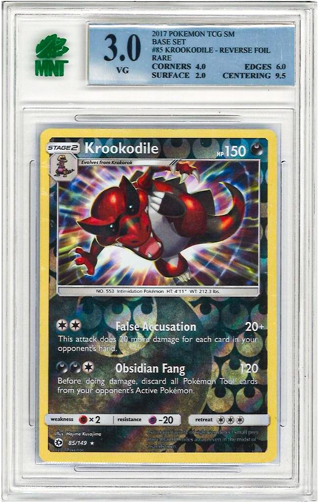 E - Pokemon TCG Card 2017 Sun & Moon Krookodile 85/149 Reverse Holo #85 Graded 3 MNT