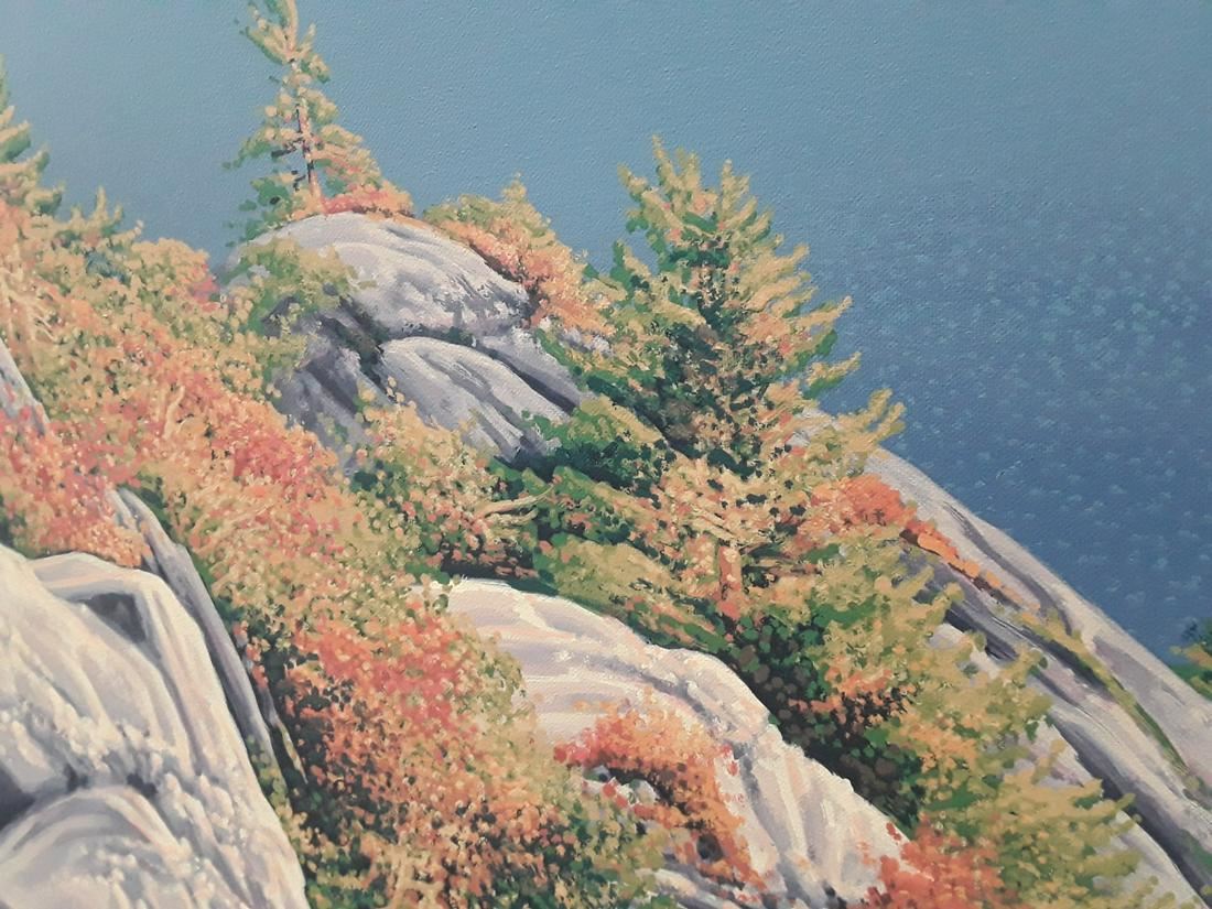 Large scale paintings in the Hamilton area may be viewed in the lobby of St. Joseph's Hospital, Charlton Campus; the lobby of the Juravinski Cancer Centre; the office of the Dean of Medicine, McMaster University Medical Centre; the David Braley Research Centre at the Hamilton General Hospital; St. Peter’s Hospital; the headquarters of the Royal Botanical Gardens and the Hamilton Region Conservation Authority; The John Sopinka Court House; Mohawk College, and at the David Braley Medical Centre (Bay and Main St., Hamilton) work in progress Summer, 2017.