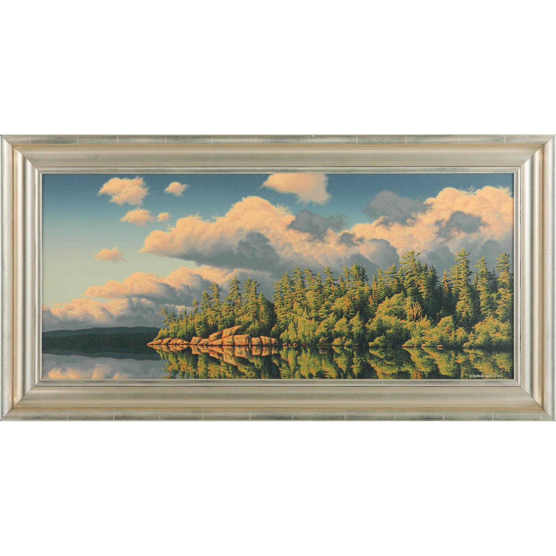 E.Robert Ross's "Smoothwater Lake" Original acrylic painted on Hardboard. Smoothwater is in Temaeami Region, Ontario, Canada. This piece is beautifully framed, Circa 2002. Image - 16" x 36". Framed - 411/2" x 22".