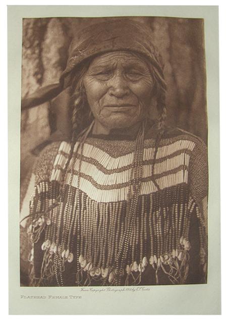Curtis photogravure of Flathead female in excellent condition, ready to frame. 16" x 14" (7-1/4" X 5")