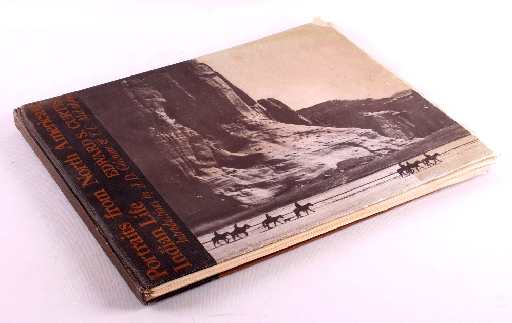 This is a "Portraits from North American Indian Life" book. The book is a collection of portraits and other photographs taken by E.S. Curtis. Curtis is well known for his works in photography of the American west and Native Americans. This book contains over 50 of his works. At one time, the book was bound. The binding has come apart and the pages are now loose. The pages are in good condition. The book measures 14.75" x 18".